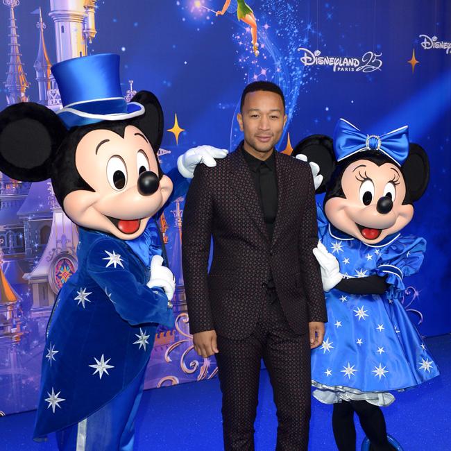 Before sitting down at his piano, John Legend posed for pictures with Minney and Mickey Mouse at Disneyland Paris for the park’s 25th anniversary on Sunday (26.03.17).