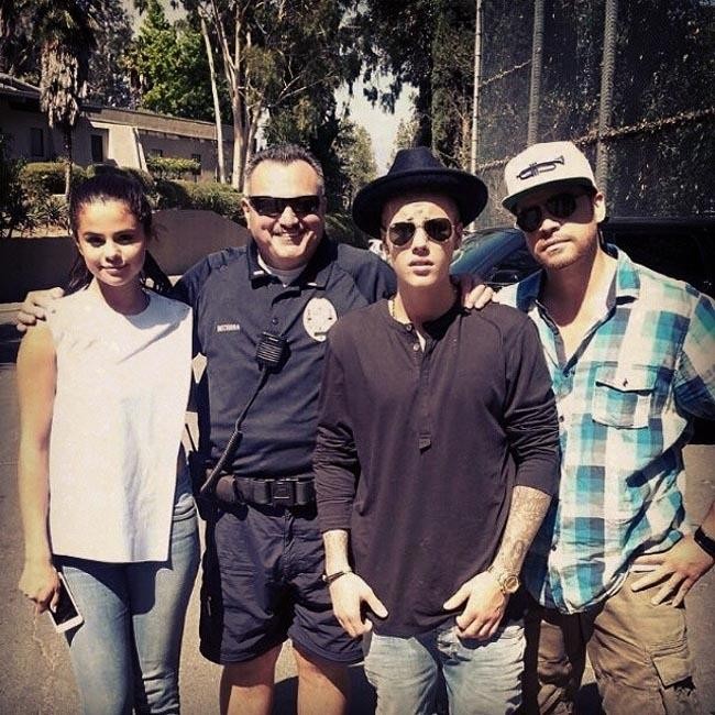 David Osokow, director of client relations at SBE entertainment group, posted a picture of Justin, Selena, 21, and a Lieutenant Beccera on his Instagram account, thanking the police official for his "looking after us".