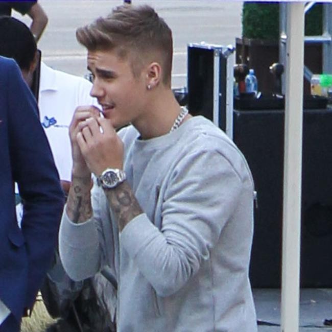 Justin Bieber swapped his trademark vests for a grey sweatshirt as he covered up his tattoos while on a stroll in Los Angeles, California.