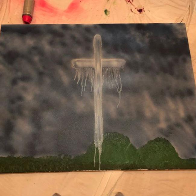 He wrote alongside the photo: "Selling this painting I did called "Calvary" ALL PROCEEDS GO TO WILDFIRES IN CA (sic)."