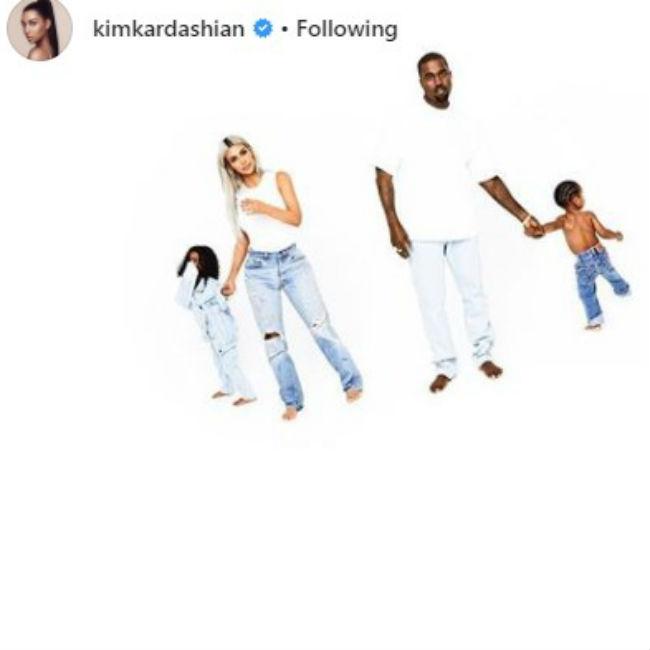But Kim, 37, has now revealed a picture in her 25 day countdown to Christmas on social media which shows her and Kanye with their daughter North, four, and son Saint, two, all wearing coordinating denim outfits.