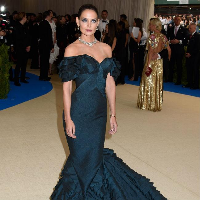 Katie Holmes was the epitome of elegance in a stunning long fishtail dark green gown at the 2017 Met Gala.