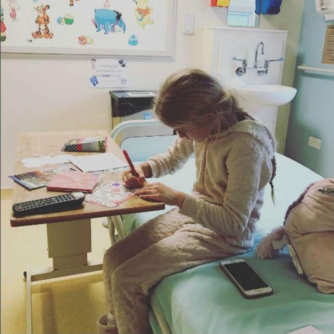 He accompanied the shot with the caption: "Princess making valentines card while waiting to have her pins out of the arm she broke. Brave girl waiting for her operation. Kates in one hospital and I am in another. Can’t wait for everyone to be home together tonight. Xx (sic)"