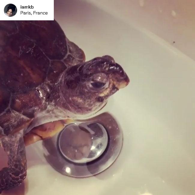 In the video, Kelly can be seen stroking the animal’s shell and she can be heard sweetly saying to the turtle: "Hey Jessica, morning swim. Hello, is that nice?"