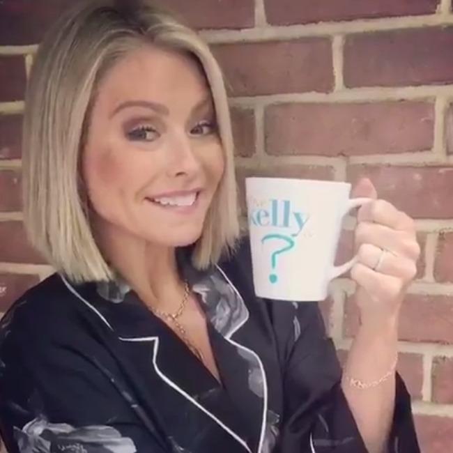 Kelly broke the news to her fans when she took to Twitter on Sunday (30.04.17) to share a video of herself drinking from a ‘Live!’ branded mug with a question mark drawn on it.