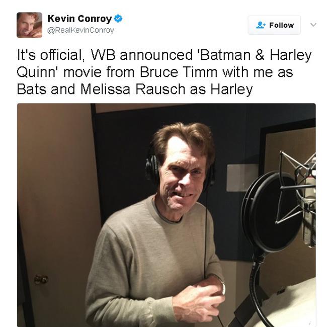 He tweeted: "It’s official, WB announced ‘Batman & Harley Quinn’ movie from Bruce Timm with me as Bats and Melissa Rausch as Harley (sic)"