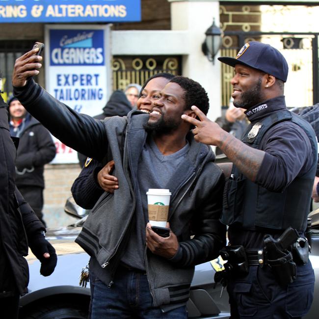 Kevin Hart took a selfie with his ‘Untouchable’ co-stars as he filmed for the upcoming movie in New York on Tuesday (21.02.17).