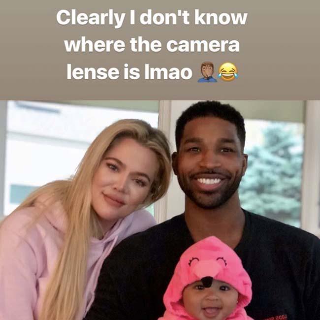 The NBA player took to his Instagram Story to share a picture of him with his girls and one of him holding baby True in the air.