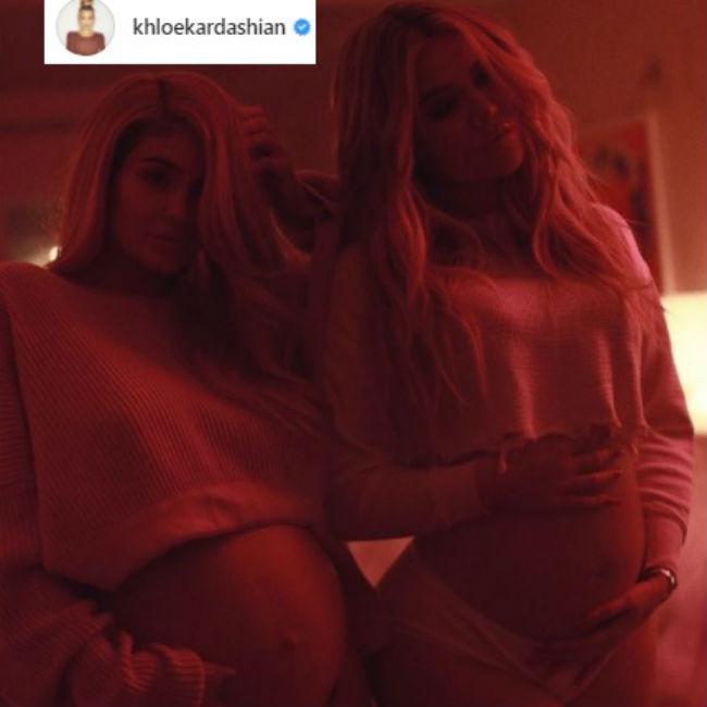 The ‘Keeping Up With the Kardashians’ star – who is expecting her first child with boyfriend Tristan Thompson – shared an intimate photo of herself posing with her younger sibling, with both their bumps exposed, as she congratulated the 20-year-old beauty on the birth of her and Travis’ Scott’s daughter.