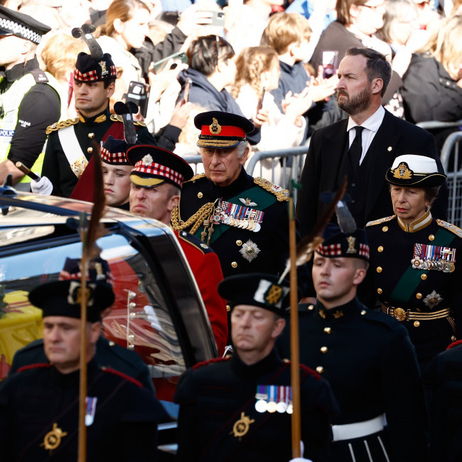 King Charles led his family in a royal procession behind Queen Elizabeth’s coffin in Edinburgh on Monday (12.09.22).