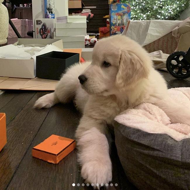 Captioning a picture of the golden retriever with herself and her kids – Mason, 10, Penelope, seven, and Reign, five – she wrote: "But what should we name her?"