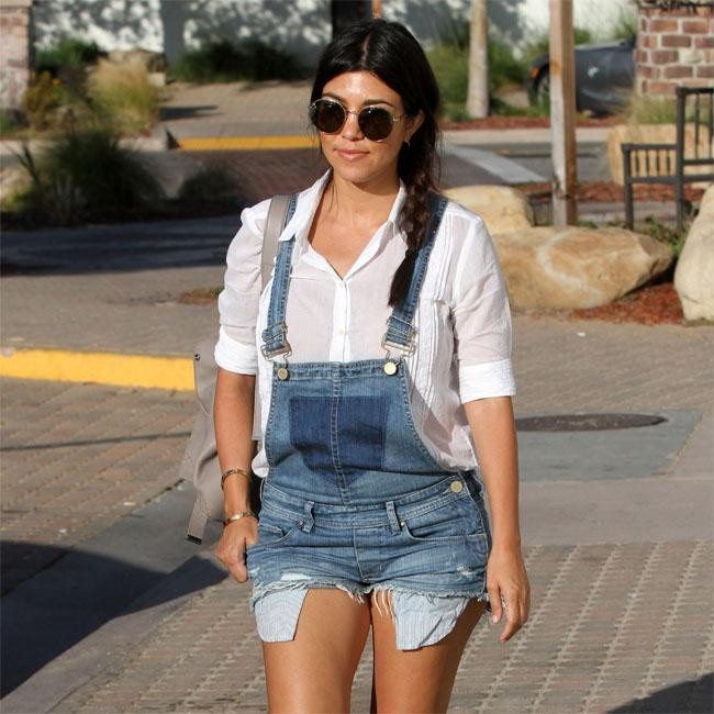 Kourtney Kardashian showed off her legs in a pair of denim dungarees as she enjoyed a shopping spree with a friend in Malibu, California. The reality TV star wore her dark hair in a plait and finished off her look with a white shirt and shades.