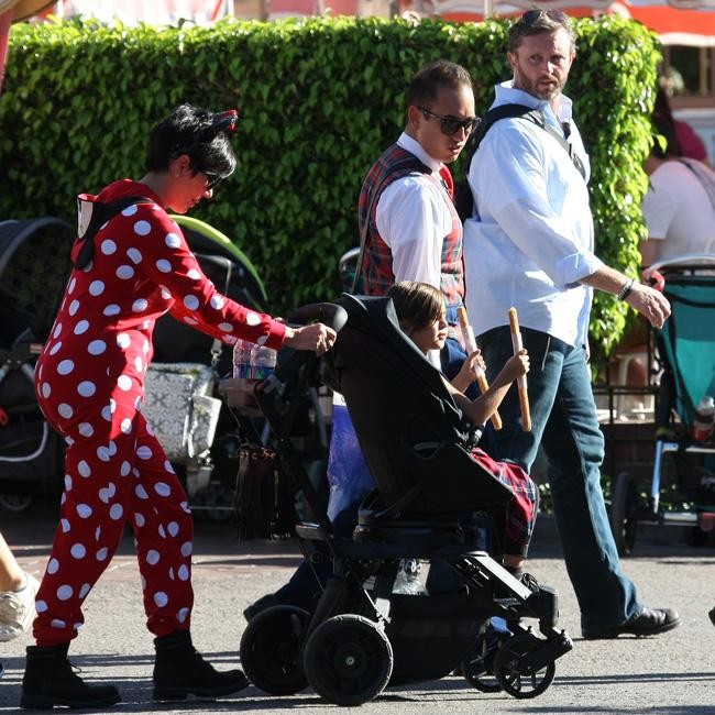 Kris Jenner was spotted looking a little dotty in a Minnie Mouse onesie as she celebrated her 59th birthday at Disneyland in Los Angeles with her four-year-old grandson Mason Disick yesterday (05.11.14). The famous matriarch completed her look with a set of mouse ears as she guided her little one through the theme park.