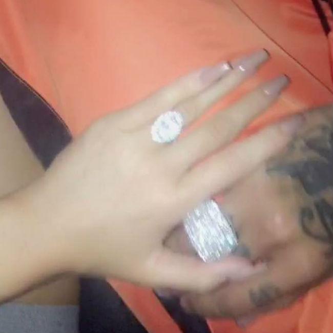 Taking to her Snapchat account on Thursday (08.09.16), the blonde beauty uploaded a photograph of their glitzy jewels and accompanied it with: "If this is my promise ring I wanna know what my engagement ring gonna look like. (sic)"