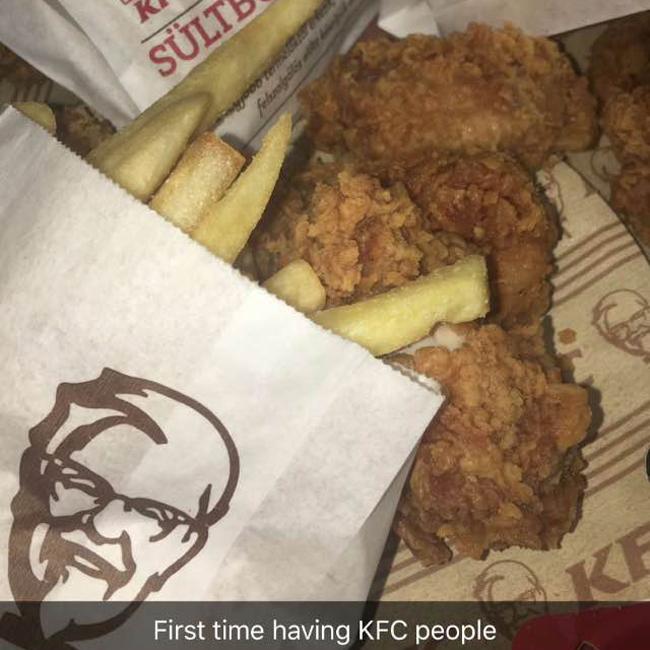 She posted a photo of her momentous meal on her Snapchat account along with the caption "first time having KFC people".