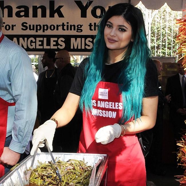 Kylie Jenner has shown her charitable side by getting stuck in at a homeless shelter in Los Angeles. The 17-year-old star was joined by her rumoured boyfriend Tyga at the event where she was in charge of green beans as part of a Thanksgiving meal.