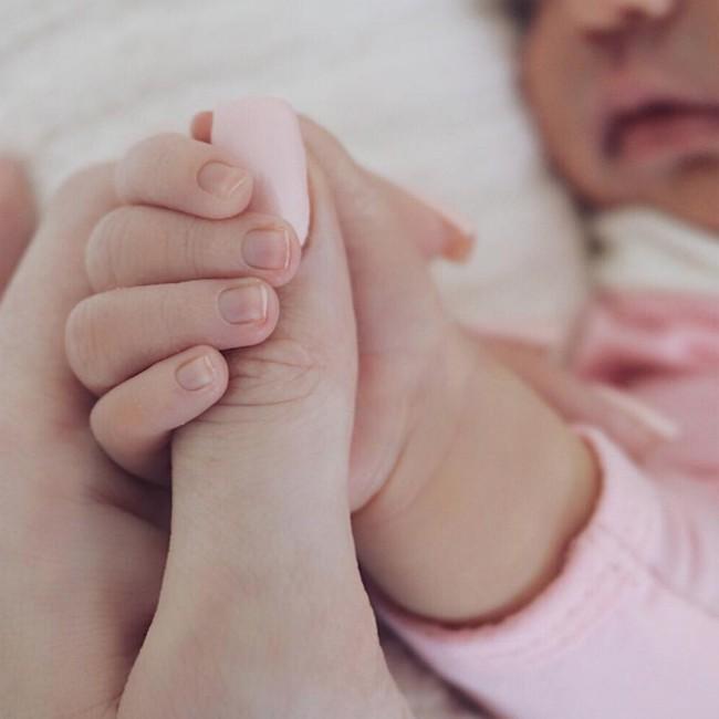 Posting a photo of her daughter with her hand wrapped around Kylie’s thumb, the ‘Keeping Up with the Kardashians’ star simply wrote: "stormi (sic)"
