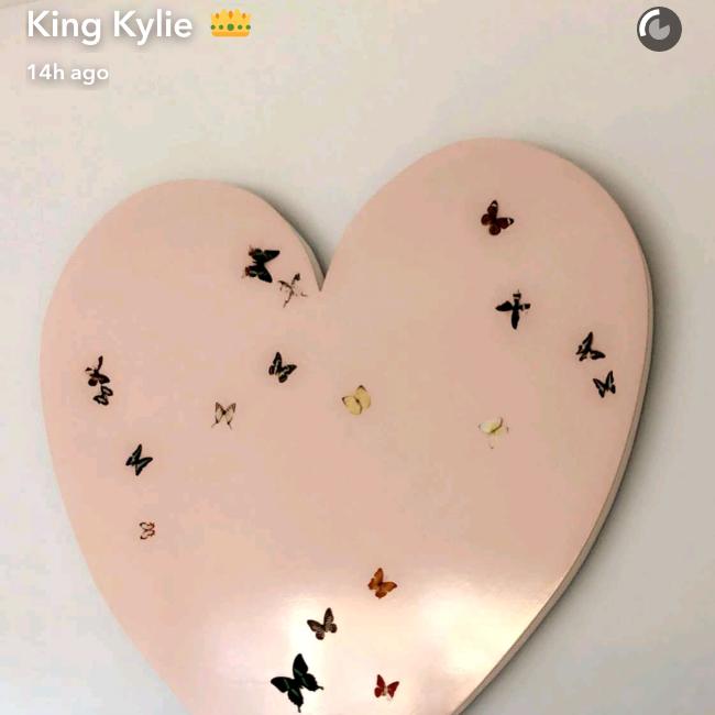 The 20-year-old star took to her Snapchat account to reveal part of her four-week-old baby Stormi’s bedroom, which features a huge pink heart accompanied with beautiful multi-coloured butterflies.