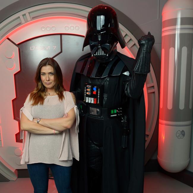 Kym Marsh looked far from scared to be stood next to Darth Vader at Disneyland Paris on Sunday (26.03.17).