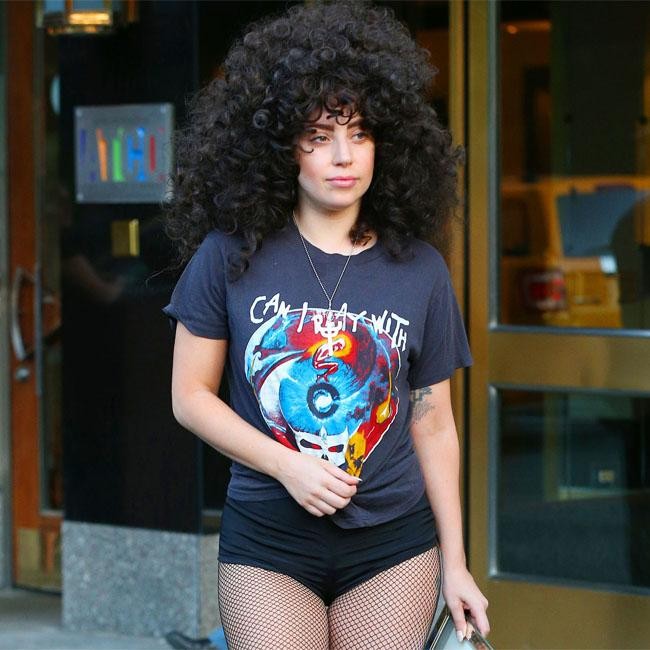 Lady Gaga left little to the imagination in a pair of tiny hotpants and fishnet tights as she left a tattoo parlour in New York City. The ‘Pokerface’ singer had a trumpet inked on her right forearm.