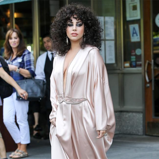 Lady Gaga turned heads with her voluminous curls and pink satin robe as she stepped out in New York City.