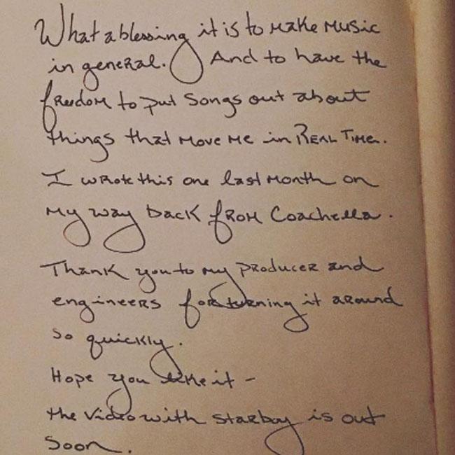 In a note posted on the photo-sharing app on Monday (15.05.17), she said: "What a blessing it is to make music in general. And to have the freedom to put songs out about things that move me in real time.