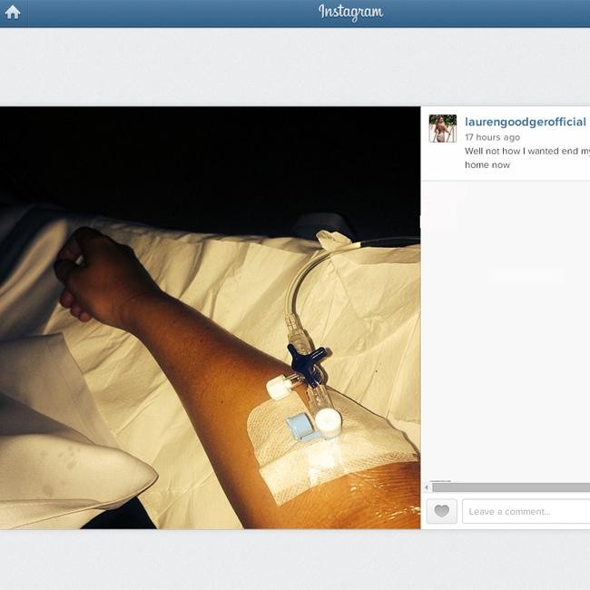 Taking to her Twitter account after the scary incident, Lauren posted a picture of her arm strapped up to a drip along with the caption: "Well not how I wanted end my holiday want get home now (sic)."