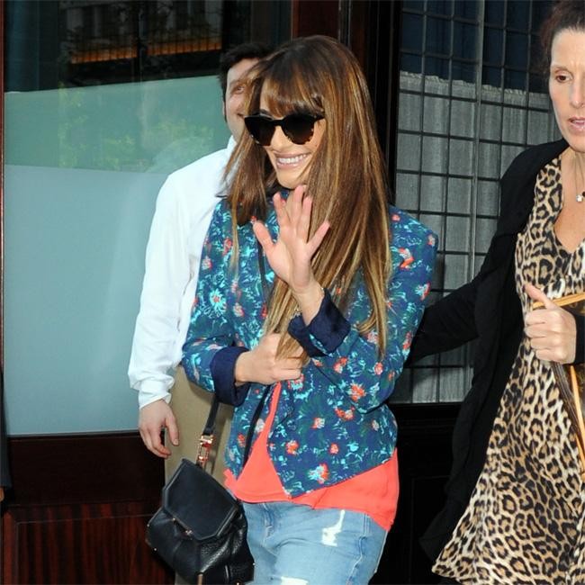 Lea Michele looked pretty in a floral blue blazer and distressed denim jeans as she strolled around New York City.