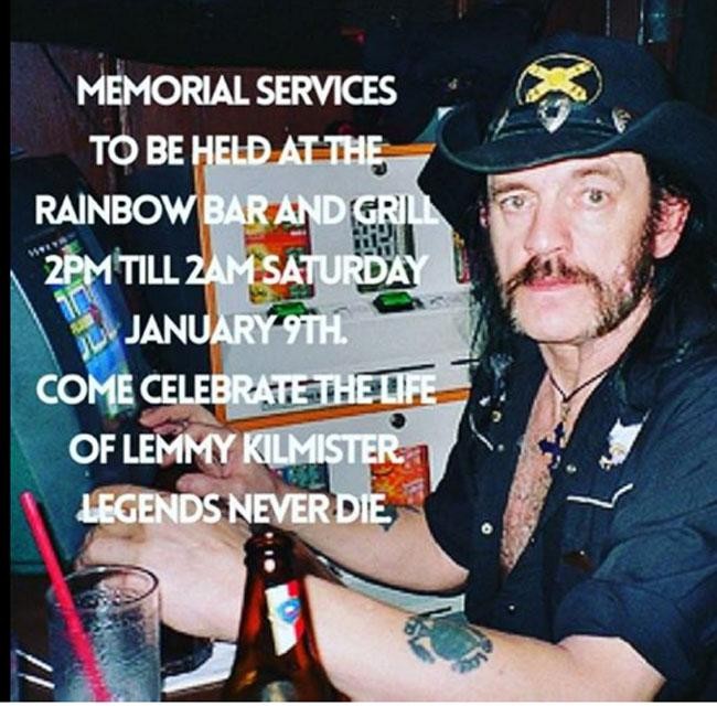 The post read: "Join us as we say goodbye to a dear friend and loved one. We will open our doors at 2pm. Come celebrate the life of Lemmy Kilmister. Legends never die."
