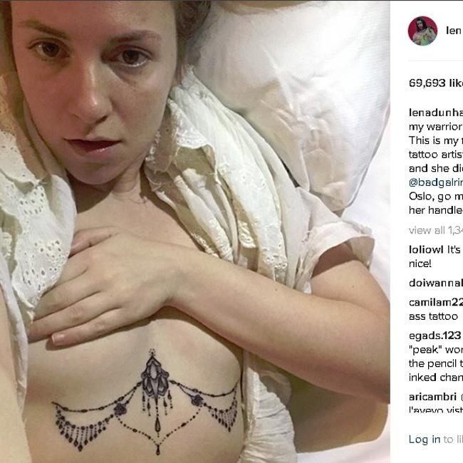 Lena Dunham has had a "t*t chandelier" inked onto her chest.