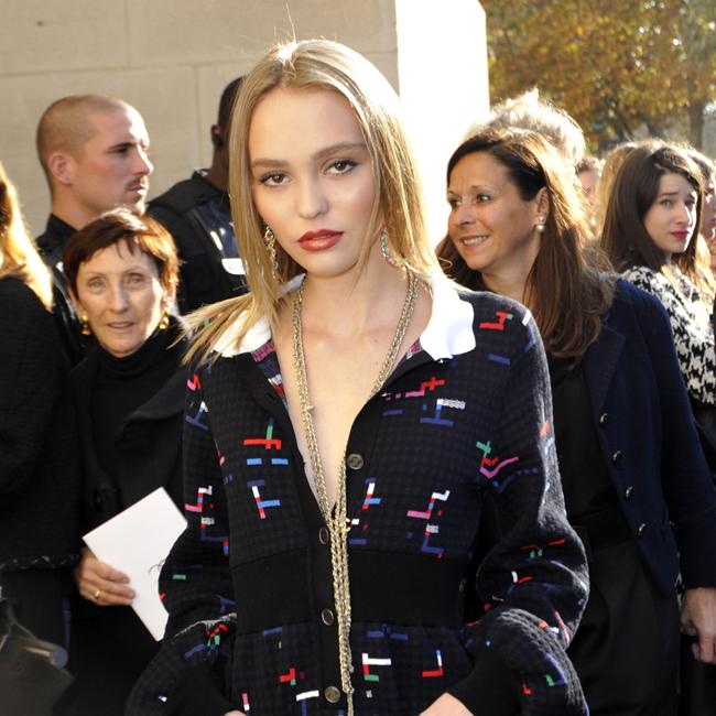 The golden-haired beauty accessorised her chic ensemble with a long gold chain draped around her neck as she attended the fashion extravaganza in the French capital.