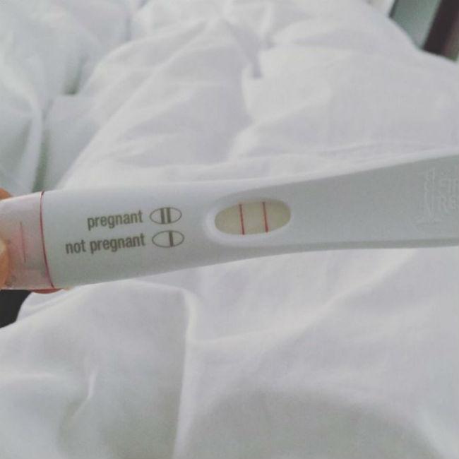 Taking to her Twitter account today (01.04.16), the brunette beauty uploaded a photograph of her in bed holding a positive pregnancy test alongside two baby emoticons.