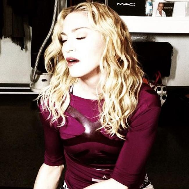 Madonna led a class with her trainer, Nicole Winhoffer, at the opening of her Hard Candy studio in Toronto, and posted a photograph of herself exhausted after working out on Instagram.
