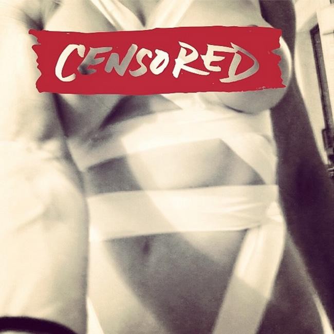 The snap showed off her barely-there ensemble, which appeared to be made of white tape that was wrapped around her breasts, although she did manage to preserve her modesty by inserting a large "censored" sign across it.