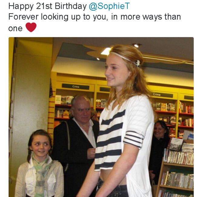 The 19-year-old actress – who portrays would-be assassin Arya Stark on the HBO series – shared a throwback picture of herself several years ago peering up to her much taller pal, saying that she will "forever look up" to her on her birthday yesterday (21.02.17).