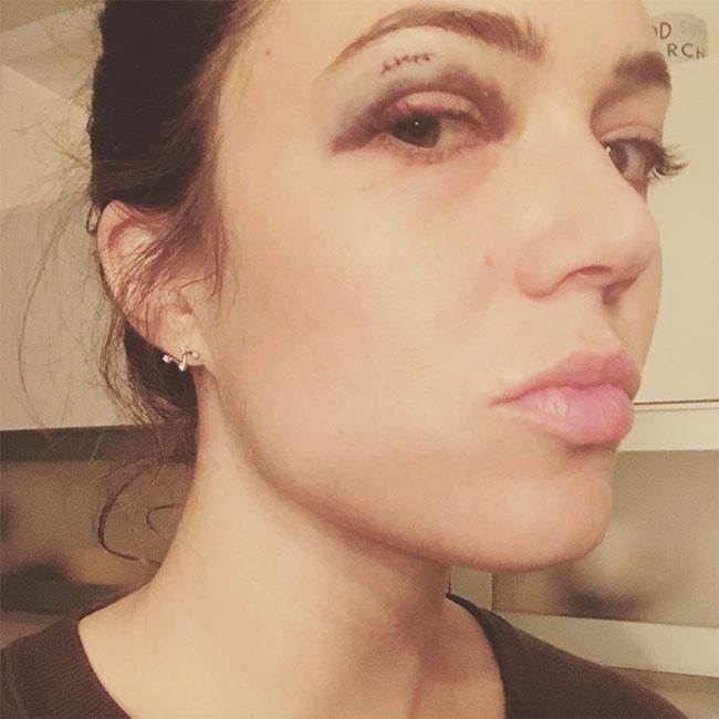 "Thanks @stokerplasticsurgery for coming in at 9pm to sew me up!! Never had stitches or a black eye before… what a day! (sic)"