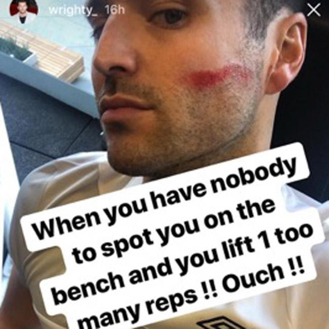 The ‘EXTRA’ host took to Instagram to reveal a nasty looking graze on his left cheek which he claims was caused because he didn’t have anyone to spot him during his workout on Monday (19.02.18).