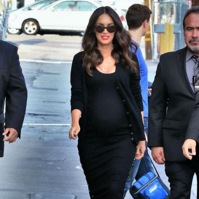 Megan Fox may be edging closer to her due day but she didn’t let her pregnancy stop her rocking a slinky frock and killer heels for her appearance on ‘Jimmy Kimmel Live!’. The actress was radiant as she strutted her stuff with a beaming smile and a pair of dark shades on her eyes.