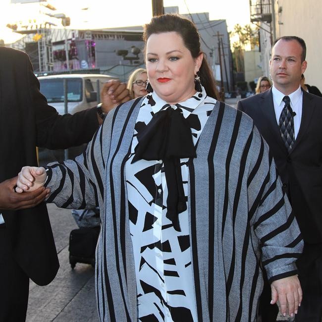 Melissa McCarthy got all glammed up for her appearance on ‘Jimmy Kimmel Live!’ on Monday (27.10.14). The larger-than-life actress – who is hotly tipped to star in the all-female sequel to classic eighties movie franchise ‘Ghostbusters’ – rouged her lips and wore a grey striped cardigan over a white and black geometric blouse.