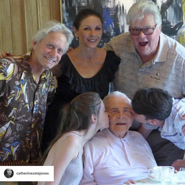 The 72-year-old actor and his 47-year-old wife Catherine Zeta-Jones enjoyed some quality time together with the 99-year-old actor for the American national holiday on Thursday (24.11.16), and the ‘Chicago’ star shared a picture of the family all together on social media.