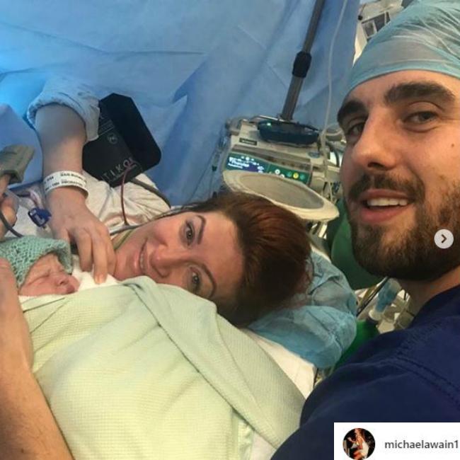 Michaela Wain gives birth