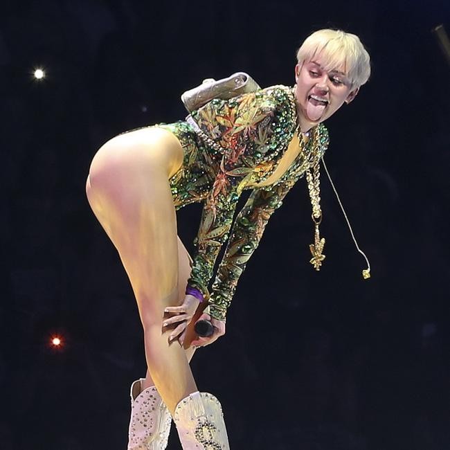 However, she showed no signs of losing confidence as she sang tracks from her ‘Bangerz’ album including ‘Love Money Party’, ‘4X4’, ‘FU’ and ‘Adore You’, surrounded by dancers dressed in many outrageous costumes including as the Statue of Liberty, Mount Rushmore and former president of the US, Bill Clinton.