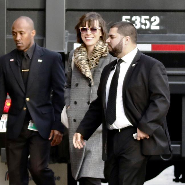 Milla Jovovich was escorted by security as she made her way into the studio for an appearance on Jimmy Kimmel Live! in Los Angeles on Tuesday (24.01.17).