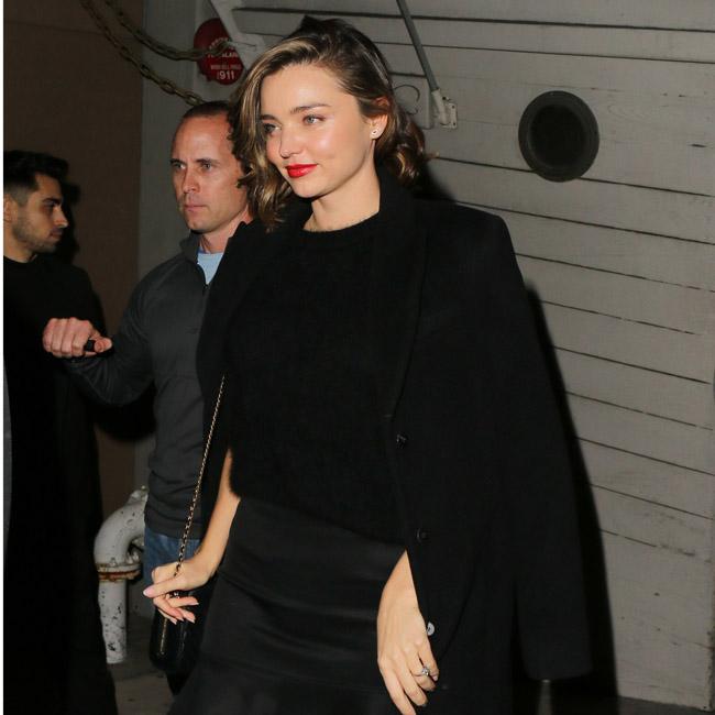 Miranda Kerr showed off her large diamond engagement ring and was positively glowing as she arrived at Giorgio Baldi with her fiance Evan Spiegel in Santa Monica, California on Saturday (17.12.16).