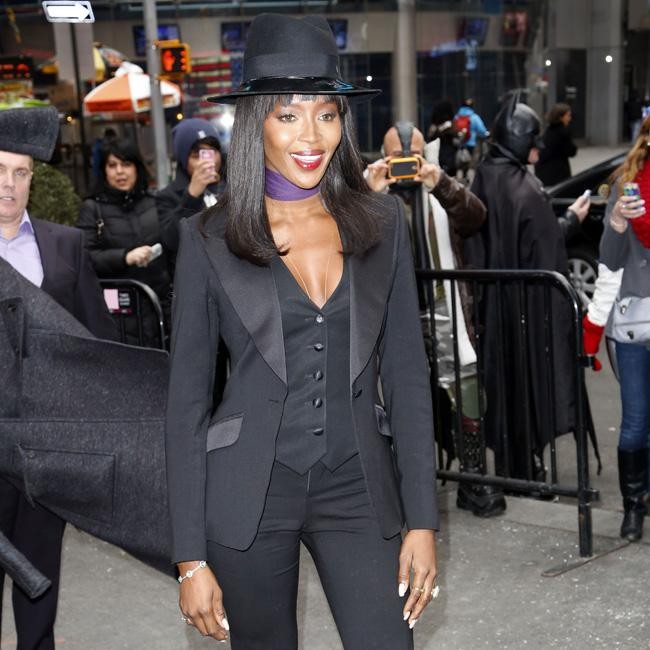 Naomi Campbell ensured all eyes were on her in a fitted tuxedo jacket as the cast of ‘The Face’ rang the NASDAQ Closing Bell in New York.