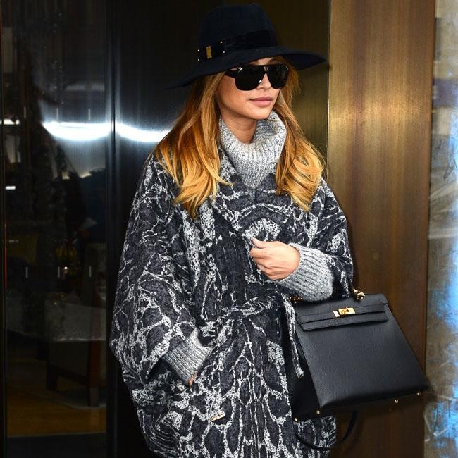 Naya Rivera showed off a new hair colour outside her New York hotel after going from brunette to a golden blonde. The ‘Glee’ star wrapped up warm in a grey animal print coat and a chunky polo neck sweater. She added a stylish fedora and dark sunglasses.