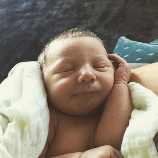 Alongside the image of the baby – who was born via a water birth – asleep and wrapped in a soft blanket, he penned: "I just love how peaceful he is. Daddy will be home soon Odin. #babies #love #family (sic)"