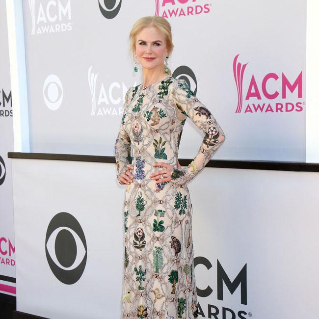 Nicole Kidman stunned in a nude-coloured gown with different tree shapes emblazoned on it.