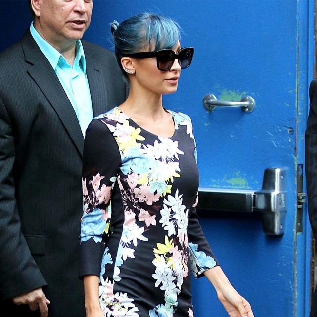 Nicole Richie was spotted outside the ‘Good Morning America’ studios in New York. The television personality wore a floral dress and sunglasses, and pulled back her electric blue hair into a neat bun.