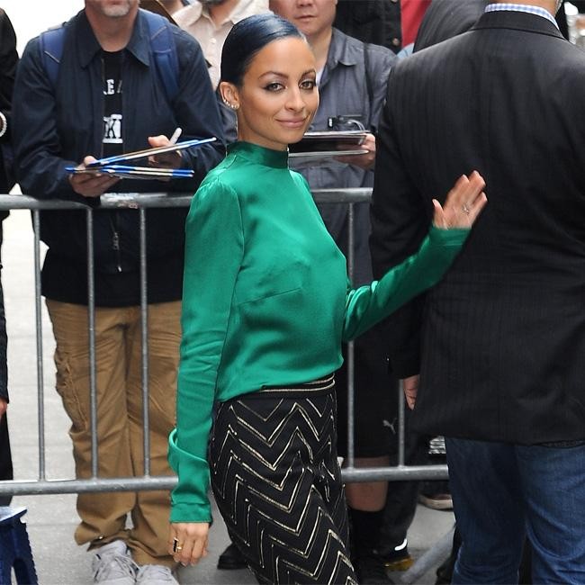 Nicole Richie showed off her slender frame in an emerald green blouse and embellished trousers as she arrived at Sirius Radio in New York City.
